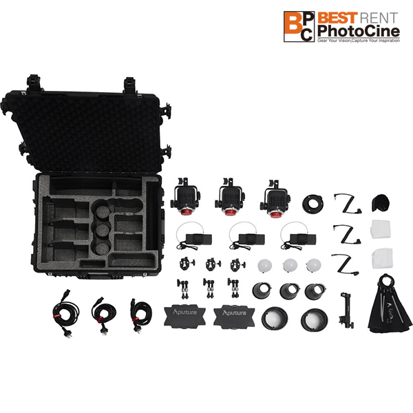 - Three STORM 80c Light Fixtures ; One Light Dome and Bowens Adapter ; Three AC Adapters and 13.1′ Power Cables ; Rolling Hard Case with Tow Handle ; Two CF4 Fresnels and Barn Doors ; One Handheld Bracket, Three D-Tap Cables